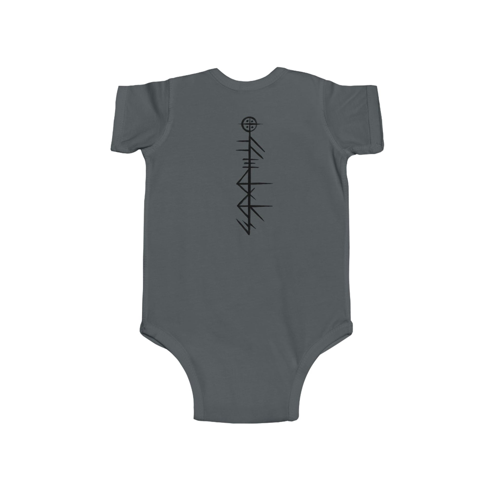 This bodysuit features a bindrune I designed for my daughter. It consists of Othala, Raidho, Kanaz, Berkano, Aligiz, and Eihwaz. Together these runes describe her familial heritage, her own journey forward, her inner spark, her femininity, the protective energy around her, and her resilience, wisdom, steadfastness, and spirituality. The wings are those of a Valkyrie, a swan maiden, symbolizing ascension, protection, and warrior destiny. This isn't giving princess, it's giving...